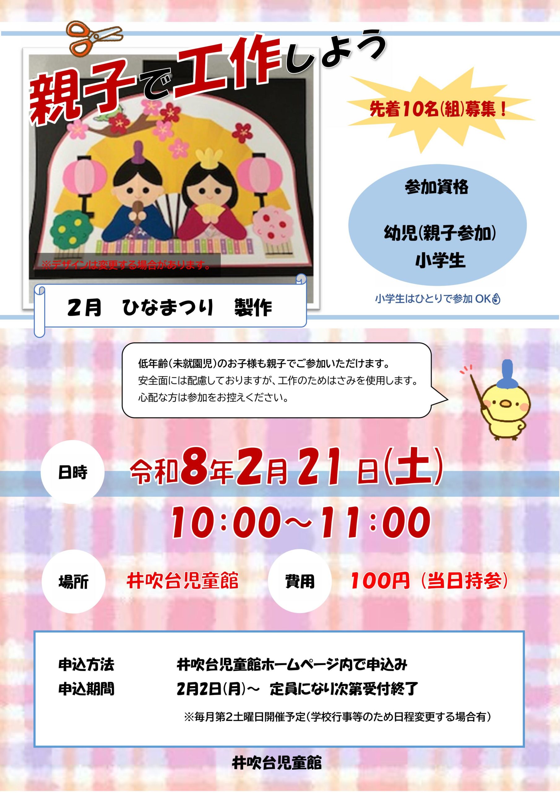 2月の親子で工作の申し込み受け付けが始まります。