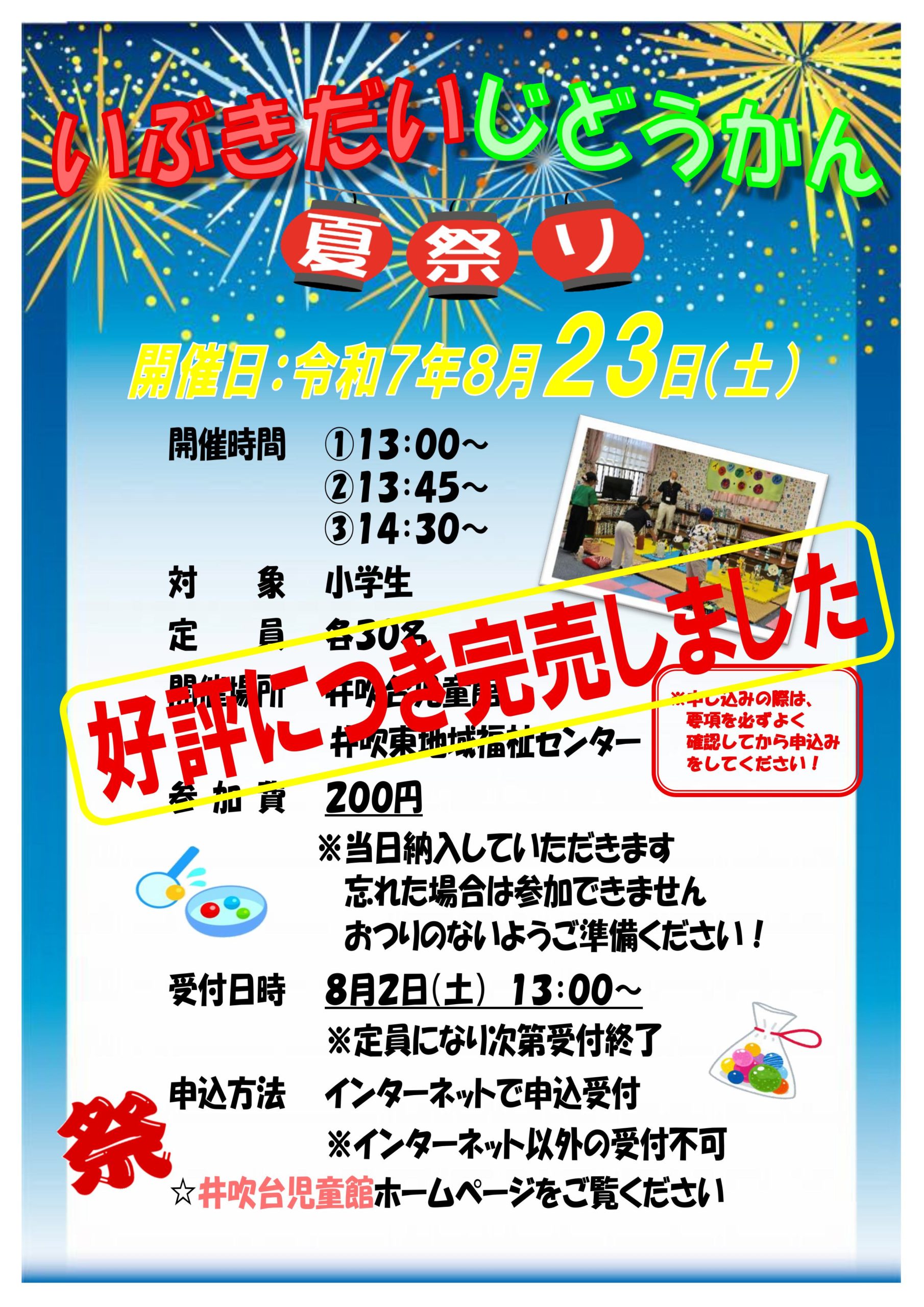 【小学生向け】じどうかんなつまつりは、すべての時間帯、完売しました。